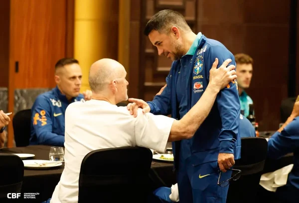 A Seleção Brasileira encerra a apresentação dos atletas convocados para os amistosos contra França e Croácia nesta segunda-feira (23/3). Em vídeo divulgado pela Confederação Brasileira de Futebol (CBF), jogadores como Marquinhos, Gabriel Sara, Casemiro e Matheus Cunha se encontram com os demais colegas que já estavam hospedados no hotel em Orlando.