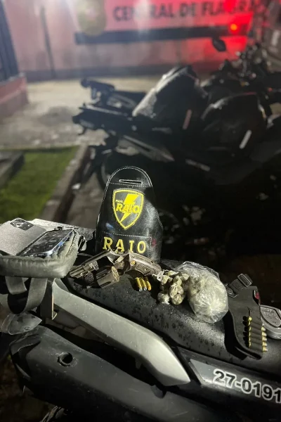 Um dos suspeitos foi flagrado com uma arma na cintura, enquanto o outro portava uma pochete preta contendo porções de maconha e uma balança de precisão. Diante do flagrante, a dupla foi conduzida à Central de Flagrantes, onde permaneceu à disposição da autoridade policial.