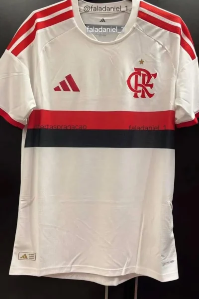 O Flamengo teve a sua suposta camisa II para a temporada de 2026 vazada nas redes sociais, na tarde desta quarta-feira (25). O manto é predominantemente branco, com detalhes em vermelho e marca o retorno das linhas horizontais rubro-negras, que não figuravam nos uniformes alternativos desde 2020.